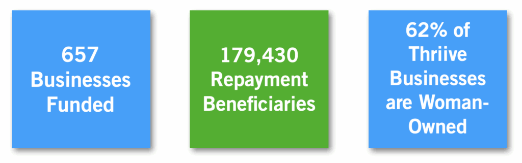 ThriiveCapital provides pay-it-forward financing for production equipment to ambitious small business entrepreneurs, helping to expand their businesses and create desperately needed new jobs. ThriiveCapital loans are not repaid in cash, but instead “paid forward” to vulnerable community members through interest-free, equal-value job trainings or donations designed to relieve poverty.